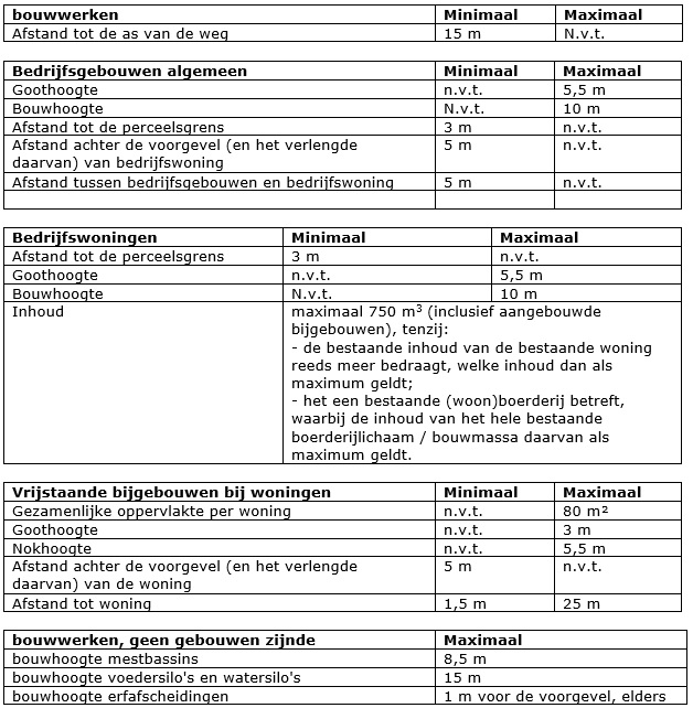 | Afstand tussen de bedrijfsgebouwen en bedrijfswoning | 5 m | n.v.t. |