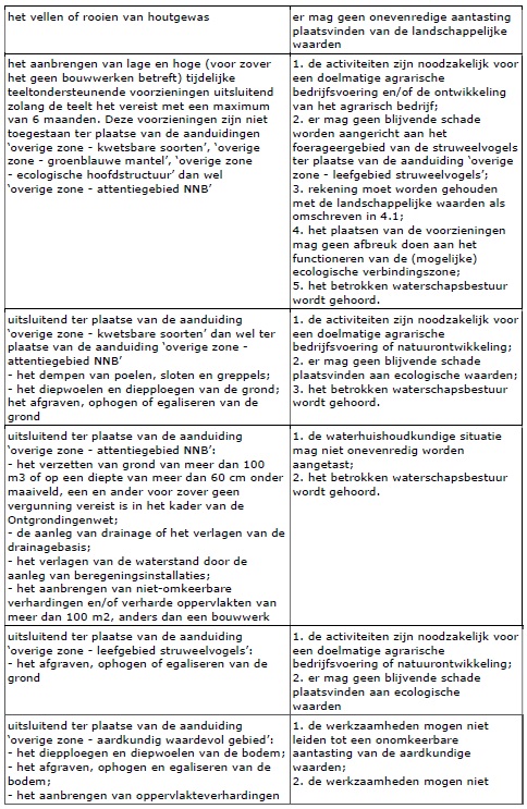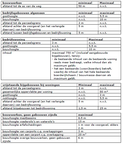 - laag/ tijdelijk: teeltondersteunende voorzieningen met een hoogte van maximaal 1,5 m, uitsluitend toegestaan zolang de teelt het vereist met een maximum van 6 maanden, bijvoorbeeld insectengaas, afdekfolies, lage tunnels;