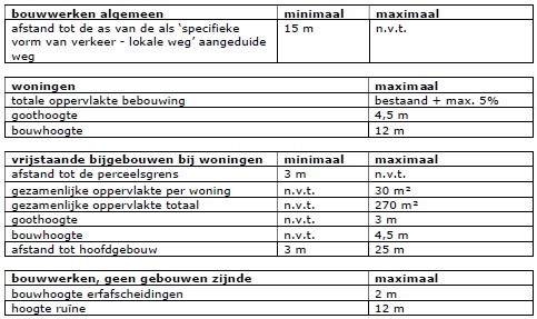 - gelijk is aan de afstand van bestaande gebouwen tot de as van de weg op het betreffende bouwperceel, indien die afstand kleiner is dan de in de regels voorgeschreven afstand.
