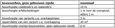 - hoog/ tijdelijk: teeltondersteunende voorzieningen met een hoogte van minimaal 1,5 m, uitsluitend toegestaan zolang de teelt het vereist met een maximum van 6 maanden, bijvoorbeeld menstoegankelijke wandelkappen, schaduwhallen en hagelnetten;