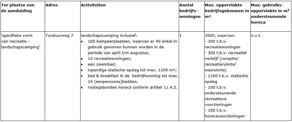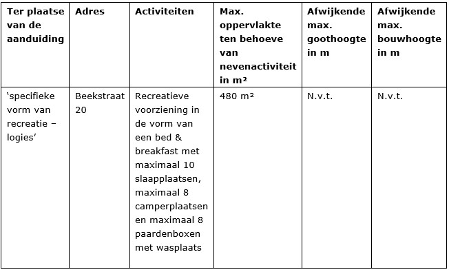 Een nevenactiviteit met als doel het verstrekken van logies en ontbijt, door het beschikbaar stellen van slaap- en sanitaire ruimten, aan steeds wisselend publiek dat voor een korte periode, namelijk één tot enkele nachten, ter plaatse verblijft. Onder bed & breakfast wordt niet verstaan overnachting, noodzakelijk in verband met het verrichten van tijdelijke of seizoensgebonden werkzaamheden en/of arbeid.