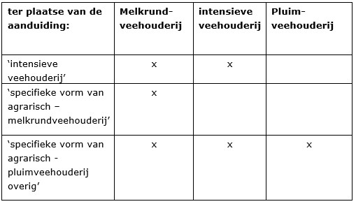Geheel of gedeeltelijk overstappen van de ene agrarische bedrijfsvorm naar de andere agrarische bedrijfsvorm.