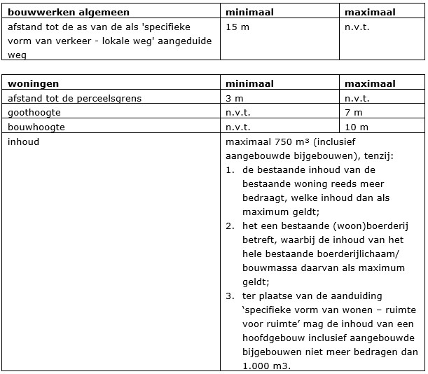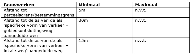 - gelijk is aan de afstand van bestaande gebouwen tot de as van de weg op het betreffende bouwperceel, indien die afstand kleiner is dan de in de regels voorgeschreven afstand.
