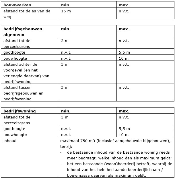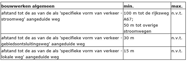 - gelijk is aan de in de regels voorgeschreven afstand van gebouwen uit de as van de weg op het betreffende bouwperceel;