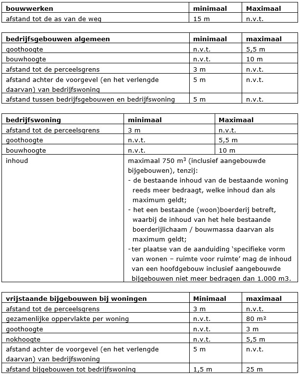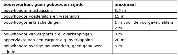 - laag/ tijdelijk: teeltondersteunende voorzieningen met een hoogte van maximaal 1,5 m, uitsluitend toegestaan zolang de teelt het vereist met een maximum van 6 maanden, bijvoorbeeld insectengaas, afdekfolies, lage tunnels;